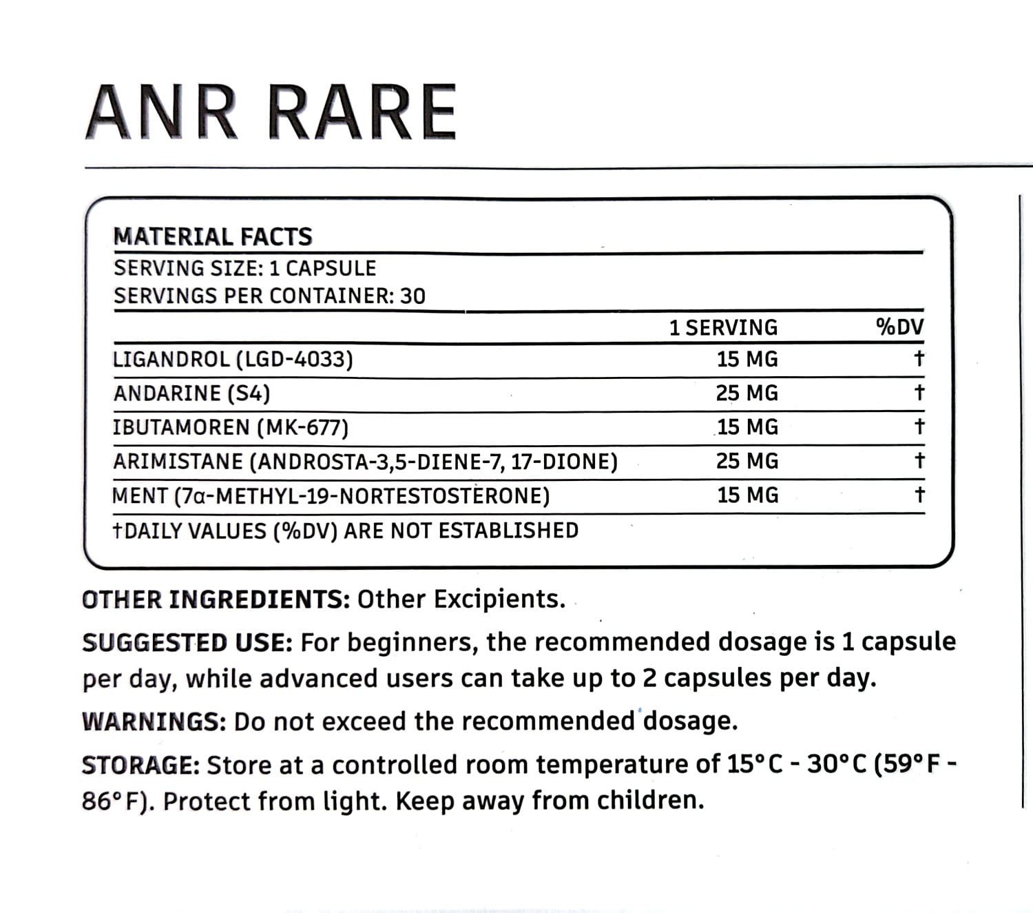 LGD-4033 15MG, S4 25MG, MK-677 15MG, Androsta-3,5-Diene-7,17-Dione 25MG, 7α-methyl-19-nortestosterone 15MG