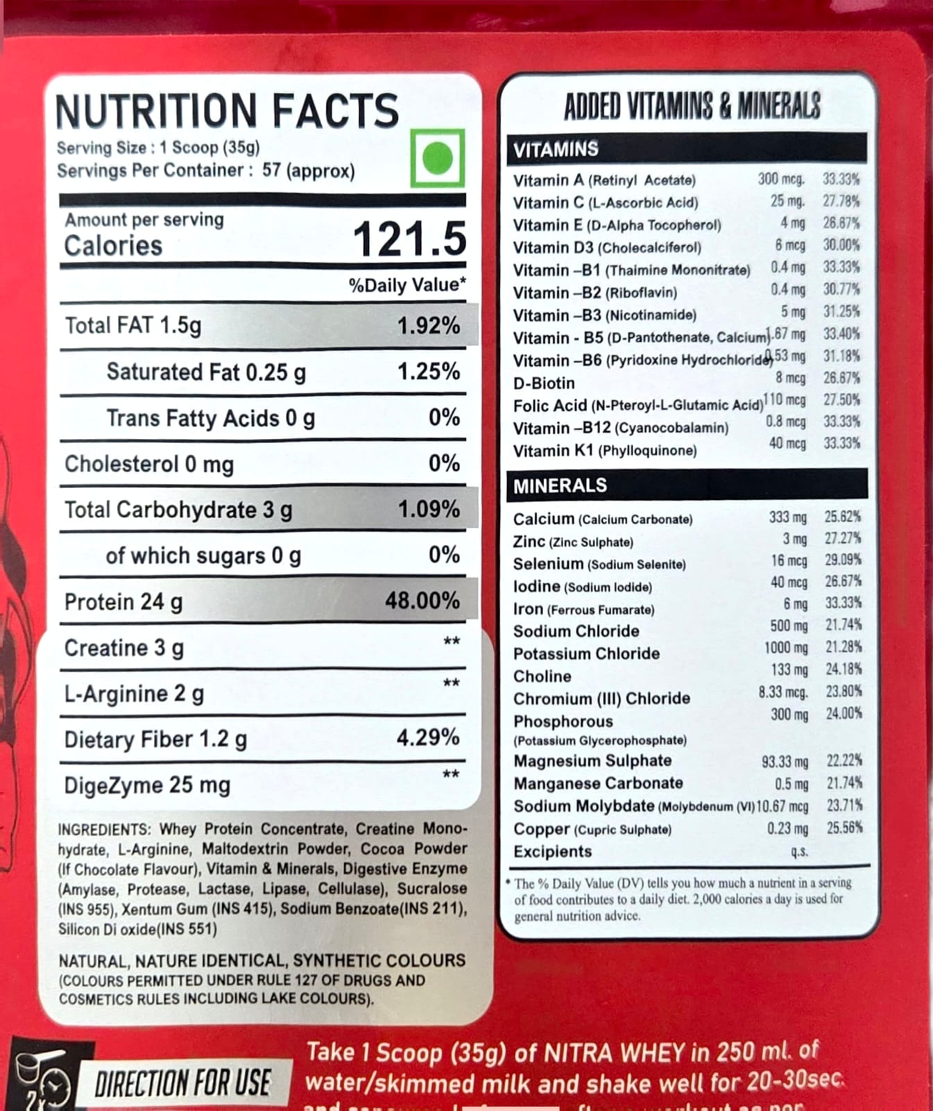 - 25 g whey protein per serving to support lean muscle growth and post-workout repair.