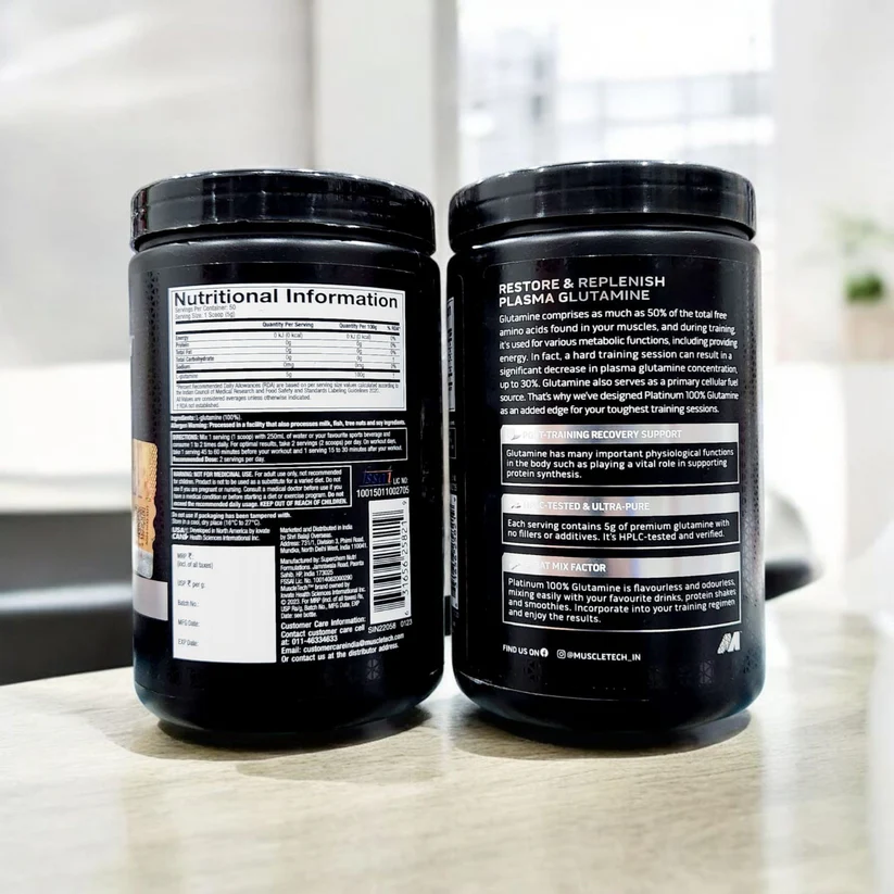 After strenuous workouts, the natural level of glutamine in your body gets depleted. To replenish the lost glutamine level MuscleTech Platinum 100% Glutamine is formulated. When taken post-workout, this supplement boosts the level of glutamine in your muscle cells to ensure an effective muscle build-up. Intake of s MuscleTech Platinum 100% Glutamine enhances the energy level of your body to speed up the muscle recovery and repair process after heavy workouts. This further reduces the risk of muscle breakdown, thus helping you retain your hard-earned muscles. Formulated with amino acids, MuscleTech Platinum 100% Glutamine help in the proper flow of blood into your muscles and prevent soreness and fatigue caused during strenuous workout sessions. Glutamine aids in increasing cell volume, glycogen replenishment and protein synthesis to experience a much-desired muscle boost. So, try MuscleTech Platinum 100% Glutamine to stimulate muscle building and achieve a muscular physique.