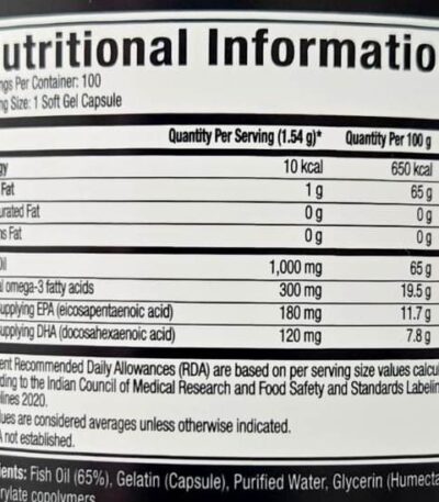 Muscletech Platinum 100% Fish Oil, 1000mg Fish Oil, 300mg 100 Softgel Capsules